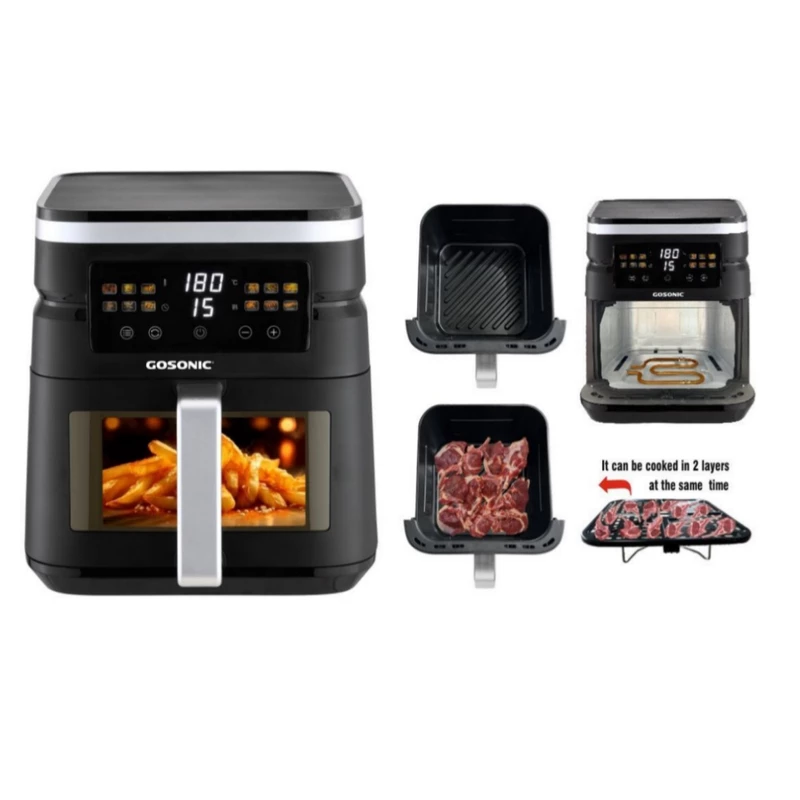 سرخ کن بدون روغن دیجیتال گوسونیک GAF-837 یکی از محصولات بی‌نظیر با طراحی منحصر به فرد و ساخت 2024 از کمپانی گوسونیک است که سبب کاهش 80 درصدی مصرف روغن شده و غذاها را با میزان مصرف بسیار پایین یا بدون روغن سالم آماده می‌کند. این سرخ کن از گوسونیک دارای توان مصرفی 2000 وات است. و دارای دو المنت برای پخت میباشد و از جدیدترین و بهترین المنت های طلایی به کار گرفته شده است. گنجایش مخزن این سرخ کن 7 لیتر است. پنل کنترلی این دستگاه به صورت لمسی طراحی شده است و با یک لمس غذاهای مورد علاقه‌ی شما را آماده می‌کند. سرخ کن بدون روغن دیجیتال گوسونیک GAF-837 دارای سیستم تایمر و تنظیم دما است که قابلیت‌های پر کاربردی می‌باشند. به کمک برنامه‌‌های پخت از پیش تعیین شده می‌توانید غذاهای لذیذ را در کوتاه‌ترین زمان آماده کنید. برنامه های پخت این محصول جدید بیشتر شده و دارای 12 برنامه پخت میباشد. با این سرخ‌کن می‌توانید انواع غذا ها مانند؛ گوشت و ماهی کبابی، مرغ و میگوی سوخاری، سیب زمینی سرخ شده، قارچ خوشمزه، بخارپز کردن سبزیجات و … را آماده کنید و همچنین انواع غذای منجمد را گرم نمایید.دارای برنامه پیش گرم کن است که قبل از شروع پخت،مخزن را گرم میکند و برای گرم کردن غذای اماده هم میتوان از ان استفاده کرد.